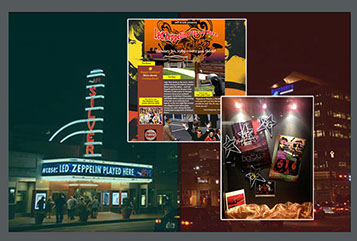 AFI Silver event presentation and website for Led Zeppelin Played Here including logo, exterior movie posters, postcards, flyers, theater lobby window design and print advertising. More examples of web and print entertainment design include: Heavy Metal Parking Lot and Heavy Metal Picnic